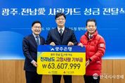 한국시사경제 광주취재본부 | 광주은행은 26일 전남도청에서 열린 ‘광주·전남愛사랑카드 고향사랑 기부금 전달식’에 참석해 전남지역 복지사각지대 해소를 위한 고향사랑기부금 6,360만 원을 전달했다고 밝혔다. 이날 전달식에는 김종민 광주은행 부행장과 강위원 전라남도 경제부지사, 김동극 전남사랑의열매 사무처장을 비롯한 관계자들이 참석해 지역사회 상생을 위한 뜻을 함께했다. 이번 기부금은 광주은행의 사회공헌형 금융상품인 ‘광주·전남愛사랑카드’ 이용 금액의 일부로 조성됐다. 광주은행은 앞서 지난 12월 1일에도 광주지역에 9,578만원의 고향사랑기부금을 전달하는 등 지속적인 지역 나눔을 실천하고 있다. ‘광주·전남愛사랑카드’는 광주은행이 2018년 창립 50주년을 기념해 출시한 상품으로, 카드 수익의 일부를 고객이 지정한 광주·전남사회복지공동모금회에 기부하는 구조로 이뤄진다. 이를 통해 지역경제 선순환에 기여하고 있으며, 출시 이후 현재까지 광주·전남 지역에 약 20억 원의 기부금을 전달했다. 김종민 광주은행 부행장은 “광주·전남愛사랑카드에 보내주신 고객들의 성원과 고향사랑 실천