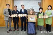 한국시사경제 김태훈 기자 | 전북특별자치도의회는 18일 의장실에서 하나예술창작센터의 장애인 예술 창작활동 지원과 노후 시설 보완 등에 활용해 달라며 기부물품 바자회 수익금 330만 원을 전달했다. 이번 전달식은 지난달 21일 도의회 현관 앞에서 전북특별자치도의회와 아름다운가게 전북본부가 함께 의원 및 사무처 직원들의 물품을 기부받아 진행한 바자회 판매 수익금을 모아 소외된 이웃을 돕기 위해 마련됐다. 문승우 의장은 “의원들과 직원들이 기부한 물품이 다시 지역사회에 따뜻한 나눔으로 돌아간다는 점에서 의미가 크며, 자원순환 캠페인에도 함께 동참할 수 있어 더욱 뜻깊다”며, “행사에 참여해 주신 의원님들과 직원분들게 감사드리며 앞으로도 도민과 함께하는 사회공헌 활동을 이어가겠다”고 말했다. 수익금을 전달받은 전해진 센터장은 “도의회의 따뜻한 나눔이 어려운 이웃에게 큰 힘이 될 것”이라며 “전달된 기금은 장애인 예술가들의 창작활동에 필요한 물품 지원과 노후 장비 보완에 소중하게 사용하겠다.”고 말했다.