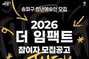 한국시사경제 이정이 기자 | 서울 송파구는 재능 있는 청년예술인을 발굴·지원하는 ‘2026 더 임팩트’ 참가자를 오는 3월 6일 오후 5시까지 모집 중이라고 23일 밝혔다. 이번 공모는 지난 2월 10일부터 접수가 진행되고 있다. 올해로 4년차를 맞는 ‘더 임팩트’는 송파구가 주관하는 청년예술인 지원 사업이다. 청년예술가에게는 활동 무대를 제공하고, 주민들에게는 일상 가까이에서 문화예술을 만날 기회를 넓히는 프로그램이다. 지난해에는 공모를 통해 선발된 37개 팀 74명의 청년예술인들이 석촌호수 아뜰리에와 문화실험공간 호수 등에서 공연과 전시를 선보이며 큰 호응을 얻었다. 공연 33회·전시 5회를 운영해 약 1만여 명의 관람객을 모으는 성과를 거뒀으며, 이를 바탕으로 올해 ‘더 임팩트’는 더욱 내실 있게 운영될 예정이다. 최종 선발된 40인(팀)은 활동 지원금을 받고 오는 12월까지 송파구 문화시설에서 공연·전시를 이어간다. 이를 통해 청년예술인의 활동 기반을 넓히고 지역 문화예술 저변 확대에도 나설 계획이다. 참가 대상은 대한민국 국적 만 19세 이상, 만 39세 이하의 전문예술가다. △국악 및 서