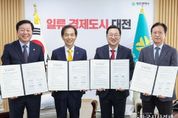 한국시사경제 대전취재본부 | 대전시는 7일 대전시청 10층 응접실에서 KAIST, 충남대학교, (사)바이오헬스케어협회(회장 맹필재)와 함께 의과학 융복합 인재양성 및 공동연구를 위한 업무협약을 체결했다. 이번 협약은 대전이 보유한 풍부한 바이오․의과학 연구 인프라와 우수한 교육․산학 연계 역량을 바탕으로 임상과 기초연구를 융합한 의사과학자(Physician Scientist) 및 의과학 분야 고급 연구인력 양성체계 구축을 위해 추진됐다. 협약에 따라 4개 기관은 ▲의사과학자 및 의과학 전문인력 공동 양성 ▲공동 연구 및 기술개발 협력 ▲교육·연구 인프라 및 정보 공유, ▲현장 실습 및 임상연계 교육 ▲지역 바이오기업 협력사업 등을 본격적으로 추진할 예정이다. 시는 본 협약을 통해, KAIST의 첨단 연구 역량, 충남대의 의학 및 임상 기반, 바이오헬스케어협회의 산업계 네트워크, 대전시의 행정 지원을 결합하여, 교육-연구-산업-정책이 유기적으로 연결되는 지역 혁신 모델 구현을 꾀하고 있다. 이장우 대전시장은 “대전은 과학기술과 의료, 산업이 조화를 이루는 대한민국 대표 바이오도시로, 이번 협약을 통해