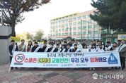 한국시사경제 울산취재본부 | 울산광역시교육청은 6일 오전 8시에 울주군 울주명지초등학교 앞 어린이보호구역에서 ‘민·관·경이 함께하는 등굣길 교통안전 홍보 활동(캠페인)’을 펼쳤다. 이번 홍보 활동은 지역사회 협력으로 어린이보호구역 내 교통사고를 예방하고, 학생이 안심하고 학교에 다닐 수 있는 교통안전 문화를 확산하고자 마련됐다. 이날 행사에는 천창수 교육감을 비롯해 김종훈 울산광역시의회 의원, 울산시청, 울주군청, 울산울주경찰서, 강남교육지원청 관계자와 울주명지초등학교 학생과 교직원 등 50여 명이 함께했다. 참여자들은 어깨띠를 두르고 학교 정문에서 출발해 인근 횡단보도와 아파트 단지 주변을 돌며 교통안전 홍보 활동을 벌였다. 무인단속카메라, 신호기, 보도 안전울타리 등 보호구역 내 안전시설을 점검하고, 등굣길 학생들에게 교통안전 홍보 스티커가 부착된 구급함 밴드 세트와 교통안전 안내문을 나눠줬다. 현장에서는 학생들에게 ‘어린이 안전 수칙 일이삼사(일단 멈춤, 이쪽저쪽 살피기, 삼 초 동안 주의, 사고 예방)’ 등의 보행 수칙을 알리고, 시민들에게는 ‘안전속도 5030’, ‘어린이보호구