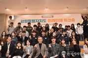 한국시사경제 권충언 기자 | 강원인재원은 12월 20일 춘천 신디자인랩 오디토리움에서 강원 미래인재 장학생 등 70명이 참석한 가운데‘미래인재 워크숍'을 개최했다고 밝혔다. 이 날 행사에서는 한 해 동안 우수한 성과를 거둔 학생들을 격려하는 '올해를 빛낸 미래인재' 수여식이 진행됐다. 성취 부문은 안정빈(2024년 선발, 서울예고 3년) 군이, 나눔 부문은 양태환(2019년 선발, 홍익대 실용음악 2년) 군이 선정됐으며 해당 학생들에게는 각 300만 원의 특별 장학금이 지급될 예정이다. 또한 그동안 비정기적으로 운영되던 모임을 전체 미래인재 간 네트워크 강화를 위해 올해 처음으로 워크숍을 개최했다. 미래인재 출신 신정엽 대표(신디자인랩 건축사무소)의 격려와 함께 내년도 미래인재 프로그램과 관련 의견 수렴 시간을 가졌다. 한편 신 대표가 주관하는 지식문화기부 플랫폼 강연(그랜드렉처)에서는 강원인재원 여행장학금 장학생의 성과공유회, 장학생과 미래인재 간 교류의 장으로 마련하여 워크숍을 더욱 풍성하게 했다. 김학철 원장은 "강원 인재가 함께 성장하기 위해서는 서로 간의 응원과 격