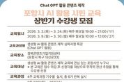 한국시사경제 노승선 기자 | 포항시는 지난해 시민들로부터 큰 호응을 얻었던 ‘생성형 AI 활용 콘텐츠 제작 특강’을 올해도 정규 편성하고, 오는 23일부터 2026년도 상반기(1·2기) 수강생을 모집한다. 이번 특강은 ChatGPT를 활용한 생성형 AI를 실생활과 업무에 즉각적으로 활용할 수 있는 실질적인 학습 기회를 제공하기 위해 마련됐다. 지난해 실시된 특강이 시민들로부터 높은 관심과 만족도를 기록함에 따라, 시는 총 6기에 걸쳐 확대 운영할 계획이다. 이번 모집은 그중 상반기에 시작되는 1기와 2기를 대상으로 진행된다. 교육은 기수별로 4주 동안 주 1회(회당 2시간)씩 진행된다. 야간반인 1기는 3월 3일부터 24일까지 매주 화요일 오후 7시에 운영되며, 2기는 3월 9일부터 30일까지 매주 월요일 오전 10시에 시작된다. 교육 장소는 경북콘텐츠기업지원센터 5층이다. 포항시민이라면 누구나 신청 가능하며, 모집 인원은 기수별 20명씩 총 40명이다. 단, 더 많은 시민에게 교육 기회를 제공하기 위해 중복 접수는 불가능하다. 접수 기간은 오는