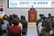 한국시사경제 노승선 기자 | 합천군은 지난 4일 군청 대회의실에서 공직자 100여 명이 참석한 가운데 2025년 11월 정례조회를 개최했다. 이번 정례조회에서는 △제12회 행복농촌만들기 콘테스트 유공 △2025년 치매극복의 날 유공 △행복동행 사회복지공무원 가족 유공 △2025년 청년 활동 유공 △2025년 양성평등주간 기념 유공 △제20회 임산부의 날 유공 등 국도정 및 군정 유공 공무원과 군민 16명에게 표창장이 수여됐다. 또한 2025년 상반기 적극행정 우수공무원으로 선정된 안전총괄과 이정일 재해복구T/F계장이‘민원中心, 현장中心’이라는 주제로 적극행정 직접 실천 사례를 발표하며 적극행정 마인드를 공유하는 시간을 가졌다. 김윤철 군수는 “작은 일이라도 군민의 입장에서 먼저 생각하고 적극적으로 실천하는 공직문화가 정착될 수 있도록 함께 노력해 달라”고 당부했으며, “다가오는 연말에는 각종 행사와 예산 마무리 등으로 업무가 많아질 시기인 만큼 소통과 협력으로 군정 목표를 차질 없이 추진해 나가자”고 강조했다.