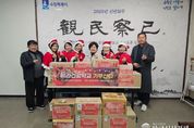 한국시사경제 김숙영 기자 | 부산 북구는 지난 9일, 구포축산물도매시장상인회(회장 서보성)가 어려운 이웃을 돕기 위해 성금 100만 원을 기탁했다고 밝혔다. 상인회 회원들은 평소 지역 내 다양한 복지활동에 꾸준히 참여해 왔으며, 이번 성금도 회원들이 십시일반 마음을 보태 마련한 것으로 지역사회에 따뜻한 의미를 더하고 있다. 서보성 회장은 “이번 나눔이 지역사회에 작은 힘이 되길 바란다”며 “앞으로도 상인회가 지역사회와 함께 나누고 상생하는 전통시장으로 성장할 수 있도록 노력하겠다”고 말했다. 오태원 북구청장은 “어려운 경기 속에서도 따뜻한 나눔을 실천해 주신 구포축산물 도매시장 상인회에 깊이 감사드린다”며 “소중한 성금이 도움이 꼭 필요한 이웃들에게 잘 전달될 수 있도록 하겠다”고 전했다.