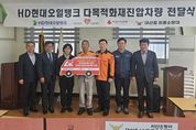 한국시사경제 오영주 기자 | 서산소방서는 3일 오전 대산읍남성의용소방대 청사에서 ‘다목적화재진압차량 인수식’을 개최했다. 이번 행사는 현대오일뱅크의 사회공헌활동 일환으로 약 8천만원 상당의 무쏘 칸 특장차 1대가 대산읍남성의용소방대에 기증됐다. 기증식에는 최장일 서산소방서장을 비롯해 대산남여의용소방대원, 현대오일뱅크 관계자, 공동모금회원, 대산읍장 등 20여 명이 참석해 새로운 차량의 안전 운행과 지역사회 안전 향상을 기원했다. 이번에 기증된 다목적화재진압차량은 600L 용량의 탱크과 250M 호스릴 2개를 탑재하고 있어 좁은 골목이나 산악지역 등 기존 소방차량의 진입이 어려운 지역에서도 신속한 초기 대응이 가능하다. 서산소방서는 차량 및 장비 점검을 완료한 뒤 현장에 즉시 투입할 예정이다. 최장일 서산소방서장은 “현대오일뱅크의 뜻깊은 기증에 감사를 드린다”며 이번 차량 기증을 계기로 의용소방대의 현장대응능력을 한층 강화하고, 지역사회 안전망을 더 튼튼히 하겠다“고 밝혔다.