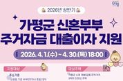 한국시사경제 경기북부취재본부 | 가평군이 신혼부부의 주거비 부담을 줄여주기 위해 대출이자 지원에 나선다. 군은 ‘2026년 상반기 신혼부부 주거자금 대출이자 지원사업’을 실시하고, 오는 4월 1일부터 30일까지 신청을 받는다고 밝혔다. 신청은 거주지 읍면 행정복지센터를 방문하거나 경기도 일자리재단 통합접수시스템을 통해 가능하다. 이번 사업은 2025년 하반기(7월~12월)에 납부한 전세 또는 매입자금 대출이자를 대상으로 가구당 최대 150만원까지 지원하는 내용이다. 지원 대상은 가평군에 거주하는 혼인신고일 기준 7년 이내 신혼부부로, 기준 중위소득 200% 이하에 해당해야 한다. 군은 가평군 소재 주택의 전세 또는 매입 자금 용도로 금융기관에서 대출을 받은 약 100가구를 선정해 지원할 계획이다. 군 관계자는 “신혼부부 주거자금 대출이자 지원사업을 통해 주거 부담을 덜고 안정적인 지역 정착을 돕겠다”며 “앞으로도 신혼부부를 위한 다양한 혜택을 확대하는 방안을 지속적으로 마련하겠다”고 말했다.