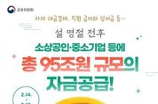 한국시사경제 문화팀 | 자재 대금결제, 직원 급여와 상여금 등… 설 명절 전후 소상공인·중소기업 등에 총 95조 원 규모의 자금공급! (2.14.~2.18.) - 중소·중견기업 ■ 특별대출, 보증 · 지원기간: ~3.5. · 신청방법: 산업은행, 기업은행, 신용보증기금 지점 상담 - 중소기업·소상공인 ■ 거래 기여도, 신용등급에 따라 은행권 금리우대 대출 · 지원기간: ~3.13. *4대 시중은행 기준(타 은행은 보도자료 참고) · 신청방법: 은행 영업점 방문→설 명절 특별자금지원 상담 - 전통시장 상인 ■ 명절 자금 지원 · 내용 : 연 4.5% 이내 금리 / 최대 1000만 원 대출 · 지원기간: ~2.13. · 신청방법: 우수시장(기초지자체 추천) 소속 상인이 상인회에 신청