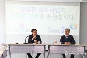 한국시사경제 충북취재본부 | 김영환 충청북도지사는 13일 충주를 방문해 지역 내 주요 현안사업장과 민생현장을 살피고 도정보고회를 통해 충주시민과 소통의 시간을 가졌다. 김 지사는 이날 통합돌봄 관계자와의 오찬간담회를 시작으로 달천동 행정복지센터를 방문해 생활 SOC사업 운영 현장을 확인하고 주민 주도의 도시재생 사업의 성과를 격려했다. 이어, 전통시장 장보기 행사와 함께 시장상인들의 현장 이야기를 청취했으며, 준공을 앞둔 건지노을숲 공사 현장을 살피며 관광분야 종사자와 함께 간담회를 가졌다. 이후 충주시의회 의원들과 지역 현안에 대한 의견을 나누고 3층 대회의실에서 300여 명의 충주시민이 참여한 가운데 도정보고회를 진행했다. 보고회에서는 2026년 도정운영방향과 함께 일하는밥퍼, 의료비후불제, 도시농부, 도시근로자 등 도정 주요사업을 소개했다. 또한, 충주시민과의 토크콘서트에서 △충북 도립 대표도서관 충주 건립 △탄금호 금가권역 생태관광공원 조성 △특장차 수소파워팩센터 건립 △충주시립노인요양원 기능보강 △충주 지방정원 조성 등 시 주요 사업에 대한 의견을 나눴다. 김영환
