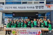 한국시사경제 경기취재본부 | 양성면새마을지도자․부녀회는 11월 3일 양성면 행정복지센터 앞 주차장에서 “사랑의 만두 나눔” 행사를 통해 지역사회에 온정을 나누었다. 이날 행사에는 새마을 회원 40여 명이 참여해 정성껏 빚은 만두와 떡국떡을 포장하여 관내 독거노인, 취약계층 등 105가구에 직접 전달하고, 따뜻한 안부 인사를 나누는 시간을 가졌다. 정인채 새마을지도자협의회 회장은 “갑자기 쌀쌀해진 날씨에 이웃들이 만두를 드시며 몸도 마음도 따뜻해지기를 바라는 마음으로 행사를 준비했다”라며 “앞으로도 지역사회 나눔 실천에 앞장서겠다”고 말했다. 최경미 새마을부녀회장은 “회원들과 함께 정성을 담아 준비한 음식이 이웃들에게 작은 위로가 됐으면 좋겠다”며 “앞으로도 다양한 봉사활동을 통해 따뜻한 지역사회를 만들어가겠다”고 소감을 전했다. 이번 행사는 한국전력공사 경인건설본부의 후원으로 진행됐으며, 양성면 새마을지도자협의회와 부녀회는 앞으로도 지속적인 나눔 활동을 통해 지역사회에 사랑과 희망을 전할 계획이다.