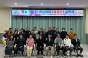 한국시사경제 경남취재본부 | 거창군은 10월 31일 거창군농업기술센터 내 미래농업복합교육관에서 교육생 30명을 대상으로 ‘2025년 귀농귀촌인 영농대학 사과반’ 수료식을 개최했다고 밝혔다. 거창군 영농대학은 지난 5월 23일 오상진 강사의 ‘사과재배 환경과 사과원 조성’ 강의를 시작으로 병해충 관리, 과실의 성숙과 저장 기술, 사과의 부가가치 창출 등 재배 기초부터 가공, 판매까지 15회에 걸쳐 60시간 교육으로 운영됐다. 올해 영농대학 교육생 30명 중 교육 시간 45시간 이상을 수강한 22명이 수료했으며, 수료생들은 교육생 커뮤니티 구축 및 농업 관련 지원사업에 가점 혜택을 받게 된다. 김규태 농업기술센터소장은 “농사와 생업으로 바쁜 가운데에도 꾸준히 교육에 참여해 지식을 쌓아가신 수료생 여러분의 열정에 진심으로 감사드린다.”며 “이번 교육을 통해 배운 전문 기술이 현장에 잘 접목되어 거창 사과 산업이 한층 더 발전하길 기대한다.”고 말했다. 한편, 거창군 귀농귀촌인 영농대학은 매년 2∼3월경 읍면사무소를 통해 농업인이 필요로 하는 작목 교육 수요조사를 통해 과정을 편성하고 있어 농업인의 만족도