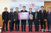 한국시사경제 노승선 기자 | 포항시는 지난 5일 재대구포항향우회 회원 일동이 포항시청을 방문해 고향사랑기부금 1,140만 원을 기탁했다고 밝혔다. 이날 기탁식에는 김석종 회장을 비롯한 향우회원들이 참석해 기부금을 전달하며 고향에 대한 변함없는 애정을 전했다. 재대구포항향우회는 2023년 510만 원, 2024년 1천만 원에 이어 올해 1천 1백여 만 원을 기탁하며 3년 연속 고향사랑기부를 이어오고 있다. 특히 이번 기부는 지난해 1월부터 향우회를 이끌어온 김석종 회장의 임기 마무리를 앞두고 이뤄져 더욱 의미가 크다. 김석종 회장은 “지난 2년 동안 재대구포항향우회에서 회원들과 함께 고향을 위한 나눔을 실천하며 큰 보람을 느꼈다”며 “임기 마지막 해에 다시 한 번 고향사랑기부로 마음을 전하게 되어 더욱 뜻깊고, 앞으로도 고향 포항의 발전을 늘 응원하겠다”고 말했다. 이강덕 포항시장은 “3년 연속 고향사랑기부를 이어온 재대구포항향우회와 임기 동안 향우회를 이끌며 꾸준히 나눔을 실천해 주신 김석종 회장님의 헌신에 깊이 감사드린다”며 의 ”이번 기부금은 시민 복지와 지역 발전을 위한 뜻깊은 사