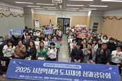 한국시사경제 이정이 기자 | 평택시는 지난 19일 중앙동 행정복지센터 대회의실에서 ‘서정역세권 도시재생사업 성과공유회’를 성황리에 개최했다. 이 성과공유회는 2023년 선정되어 추진 중인 경기 더드림 서정역세권 도시재생사업의 2025년 실적을 시민들에게 소개하는 뜻깊은 자리로 마련됐다. 2025년 플레이55 문화·예술프로그램을 통해 주민들이 직접 배워온 민요와 난타 실력을 방문객들 앞에서 선보여 큰 환호를 얻었으며, 주민 MC가 약 20분간 도시재생사업에 대한 주민의 다양한 의견과 응원 메시지를 전달하는 ‘소감나눔 토크콘서트’를 진행하여 주민참여형 도시재생사업의 취지에 맞도록 진행했다. 또한, 행사에서는 1년 동안 추진해 온 서정역세권 도시재생사업의 추진 성과를 한눈에 볼 수 있는 전시가 열려, 주민들이 도시재생사업으로 추진되는 다양한 사업 내용 및 추진 과정을 직접 확인할 수 있는 좋은 기회가 됐다. 더불어, 이번 성과공유회는 포토존, 응원 메시지 전달, 소감나눔 토크콘서트 등 송년회 분위기로 마련되어 방문객들에게 따듯한 분위기를 만들었다. 시 관계자는 “도시재생은 기본적으로 지역공동체를 기반으로