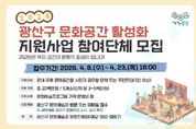 한국시사경제 광주취재본부 | 광주 광산구가 지역 유휴 문화공간을 열린 시민 문화 거점으로 활용하는 ‘2026년 문화공간 공유 활성화 지원사업’을 추진한다. 사용이 활발하지 않은 공공‧민간 문화공간을 시민의 문화 체험 및 예술 프로그램 운영 장소로 개방해, 시민 간의 문화적 연대를 강화하고 일상 속 문화 향유 기회를 확대한다는 취지다. 문화공간은 창작 예술 활동, 시민을 위한 여러 프로그램 운영이 가능한 시설로, 공연장, 전시시설, 도서관, 다중 이용 창작공간 등이 대표적 예다. 광산구는 23일까지 사업에 동참할 단체를 모집한다. 광산구에 문화공간을 보유(운영)하고 있거나 사용 허가 등을 받아 지역사회와 공간을 공유할 의지가 있는 민간단체, 3인 이상 주민 모임이 신청할 수 있다. 선정된 단체는 시민 대상 무료 문화예술 프로그램을 기획‧운영해야 한다. 광산구는 유휴 문화공간이 시민의 일상 속 문화생활 거점이자 지역 예술인의 활동 무대로 활성화될 수 있도록 선정단체에 최대 500만 원까지 운영비를 지원한다. 참여를 희망하는 단체는 신청서와 사업계획서 등을 갖춰 광산