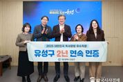 한국시사경제 대전취재본부 | 대전 유성구가 ‘2025 대한민국 독서경영 우수 직장’ 인증을 받아 대전 자치구 중 최초로 2년 연속 인증을 획득했다고 6일 밝혔다. 독서경영 우수 직장 인증제는 문화체육관광부와 한국출판문화산업진흥원 주관으로, 직원의 독서 활동을 장려하고 독서를 통한 조직 문화 개선을 실천하는 기관·기업을 대상으로 심사를 통해 인증을 부여한다. 유성구는 ‘독서를 통한 지식 창출과 사회적 소통’이라는 독서경영 비전 아래 2023년부터 다양한 프로그램을 운영하고 있다. 올해는 직원이 추천 도서를 행정시스템 게시판에 소개하고 다음 추천자를 지목하는 독서 릴레이 캠페인(내 인생 한 권의 책)을 진행해 총 23권의 도서가 추천됐다. 또한, 바쁜 업무 환경으로 도서관을 방문하기 어려운 직원을 위해 8개 공공도서관의 책을 사무실로 배송하는 ‘북켓배송’ 서비스를 운영했으며, 352명의 직원이 658권을 전달받았다. 이와 함께 직원휴게실 내 작은도서관을 운영해 직원 기부로 도서를 확충하고, 자율적인 독서 문화를 조성하기 위한 공간으로 활용하고 있다. 정용래 유성구청장은 “유성의