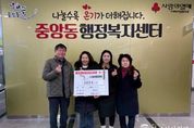 한국시사경제 권충현 기자 | 오산시 중앙동 행정복지센터는 지난 11일 중앙동 주민이자 57통 통장인 이미숙 씨가 관내 취약계층 이웃을 돕기 위해 성금 100만 원을 기탁했다고 밝혔다. 이미숙 통장은 평소 주민들과 가장 가까운 위치에서 소통하며 행정과 주민을 잇는 현장 중심의 역할을 성실히 수행해 왔으며, 취약계층을 위한 나눔 실천에도 적극 참여하는 등 지역 내 복지사각지대 해소에 기여해 오고 있다. 이미숙 통장은 “통장으로 활동하며 주민들과 소통하다 보니 어려운 이웃들이 많다는 것을 느꼈고, 그분들에게 조금이나마 힘이 되고 싶은 마음으로 기부를 결정했다”며 “성금이 꼭 필요한 곳에 사용되어 이웃들이 새해를 더 따뜻하게 보내는 데 보탬이 되길 바란다”고 말했다. 백경희 중앙동장은 “주민을 대표해 이웃사랑을 실천해 주신 따뜻한 마음에 깊이 감사드린다”며 “기탁해 주신 성금은 도움이 필요한 이웃들에게 소중히 전달해 모두가 행복한 중앙동을 만들어 가는 데 최선을 다하겠다”고 밝혔다.