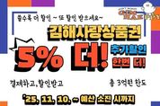 한국시사경제 경제팀 | 김해시는 오는 10일부터 김해사랑상품권 결제금액의 5%를 김해사랑상품권으로 환급(캐시백)하는 추가 할인 행사를 추진한다고 6일 밝혔다. 지역사랑상품권 국비지원 발행분 판매실적 우수 지자체로 선정돼 추가 인센티브를 교부받아 이뤄지는 행사이다. 추가 인센티브는 1차 정부 추경예산 지원을 받아 발행한 지역사랑상품권 8월 말 기준 판매실적 평가 결과에 따른 것으로, 총 300억 원 규모로 전국 33개 지자체가 선정됐으며 경남에서 김해시가 유일하다. 추가 할인은 김해사랑상품권뿐 아니라 김해공공배달앱상품권, 김해온몰상품권 결제금액에도 동일하게 적용된다. 이번 행사는 3억 원 규모로 예산 소진 전까지 진행되며 환급은 추가할인 종료 이후인 12월 중 일괄 지급 예정이다. 시는 앞서 지난 10월 29일부터 9일까지 ‘코리아그랜드페스티벌’과 연계해 김해사랑상품권 추가환급 행사를 진행하고 있으며 이번 추가할인은 그 연장선에서 지역 소상공인 매출 증대와 시민 소비 촉진에 큰 도움이 될 것으로 기대된다. 시 관계자는 “이번 추가할인은 전국적으로 우수한 판매실적을 인정받아