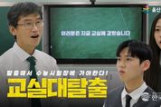 한국시사경제 울산취재본부 | 울산광역시교육청은 대학수학능력시험을 앞두고 수험생을 응원하는 영상을 제작해 6일 울산교육청 유튜브에 공개했다. 10분 40초 분량의 영상에는 천창수 교육감과 함월고등학교 3학년 학생 2명이 함께 출연해, 교실을 배경으로 임무를 수행하며 따뜻한 응원 메시지를 전한다. 영상은 ‘교실 탈출’이라는 주제로 방 탈출 게임 형식으로 구성됐다. 교실 안에서 주어진 문제를 단계적으로 해결해 교실을 탈출하는 방식으로, 교육감과 학생들이 협동해 문제를 풀어나간다. 영상의 도입부는 ‘오늘은 11월 13일 목요일, 대학수학능력시험일입니다. 여러분은 지금 교실에 갇혔습니다. 주어진 문제들을 해결해 교실을 탈출하세요!’라는 안내로 시작해 몰입감을 높인다. ‘수능 당일 가장 피해야 할 행동은?’ 등 수능 상황 관련 내용이 출제된다. 참여자들은 수험표, 신분증, 아날로그 시계, 도시락 등 수능 필수 준비물을 실제로 활용해 정답을 찾는 과정이 담겨 있다. 학생들은 문제를 풀며 사물함 비밀번호 단서를 모으고, 자물쇠를 열어 수험생에게 전하는 편지를 찾으면 다음 단