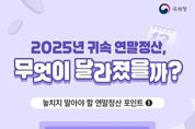 한국시사경제 문화팀 | ■ 2025년 연말정산 혜택 종합안내 · 국세청이 2025년 귀속 연말정산부터 새롭게 적용되는 공제·감면 사항에 대해 미리 알려드립니다! - 2025년 귀속 연말정산 일정 *카드 이미지 참조 - 홈택스 「간소화서비스」 개통 2026.1.15.(목) · 교육비 등 공제·감면에 필요한 소득·세액공제 자료 45종을 손쉽게 확인 가능 · 발달재활 서비스 이용증명서, 수영장·체력단련장 신용카드 등 사용(7.1. 이후)이용료 최초 제공 ■ 자녀·가족 공제, 이렇게 바뀌었습니다! · 자녀세액공제 상향 - 8세 이상 20세 이하 기본공제 대상 자녀 수에 따른 자녀세액공제 금액 10만 원 상향 *자녀 1명(25만 원), 2명(55만 원), 3명(95만 원), 4명(135만 원) 등 · 발달재활아동 장애 증빙 인정범위 확대 - 발달재활서비스 이용증명서 만으로 장애인 추가공제(200만 원) 가능 *발달재활서비스를 지원받는 아동이 9세 미만 · 중소기업 취업자 감면 합리화 - '25.3.14. 이후 중소기업 재취직한 남성 근로자도 취업일로부터 3년간 소득세의 70% 감면
