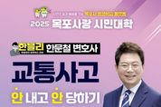 한국시사경제 전남취재본부 | 목포시는 오는 11월 11일 오후 2시 목포시민문화체육센터에서 한문철 변호사를 초청해 ‘교통사고 안 내고 안 당하기’를 주제로 특강을 연다. 이번 강연은 목포시와 국립목포대학교가 공동 운영하는 '목포사랑 시민대학' 강좌의 일환으로 마련됐다. JTBC ‘한블리(한문철의 블랙박스 리뷰)’로 잘 알려진 한문철 변호사는 교통사고 처리 분야의 대표적인 전문가로, 실제 사고 영상과 판례를 통해 법적 책임 비율, 사고 대처 요령 등 일상에서 도움이 되는 교통법률 정보를 알기 쉽게 전할 예정이다. '목포사랑 시민대학'은 ‘글로컬대학30’과 연계한 관‧학 협력 평생학습 사업으로, 목포시와 국립목포대학교가 함께 추진하고 있다. 상반기 1기 과정에서는 8개 강좌에 145명이 수료했으며, 현재 하반기 2기 과정에는 15개 강좌에 250여 명이 참여하고 있다. 시는 시민의 삶과 배움을 잇는 평생학습 플랫폼으로 발전시켜 나갈 계획이다. 시 관계자는 “이번 강연이 시민들의 교통안전 의식을 높이는 계기가 되길 바라며, 앞으로도 목포사랑 시민대학을 통해 보다 다양하고 유익한