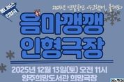 한국시사경제 문화팀 | 양주희망도서관이 오는 13일 도서관 내 희망극장에서 국악 사물놀이를 기반으로 한 인형극 '음마깽깽 인형극장'을 운영한다. '음마깽깽 인형극장'은 연말을 맞아 한 해를 마무리 할 수 있는 주제로 ‘수고했어, 올해도’로 기획됐다. 지난달 29일 약 80여 명의 관객과 함께한 천 개의 캔들 음악회에 이은 두 번째 시간이다. 특히 이번 공연은 경기아트센터의 “찾아가는 문화복지공연” 사업으로 지역 시민들에게 수준 높은 문화예술 향유의 기회를 제공하고자 마련됐다. 본 공연을 펼쳐 줄 ‘음마깽깽 연희극장’팀은 국가중요무형문화재로 지정된 전통 인형극인 ‘덜미’를 중심으로 국악과 인형극을 접목하여, 국내 유일한 남사당놀이 극을 진행하는 팀이다. 이번 공연은 3가지 막으로 구성된 옴니버스 형식의 인형극으로 펼쳐진다. 관람 신청은 도서관 누리집에서 선착순으로 가능하며, 양주시민이면 누구나 무료로 관람할 수 있다. 도서관 관계자는 “연말을 맞아 도서관에서 함께하는 공연을 통해 올해 고생한 서로를 위로하며 한 해를 잘 마무리하는 시간이 되길 기대한다”고 전했다.