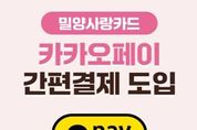 한국시사경제 노승선 기자 | 경남 밀양시는 밀양사랑카드 이용자의 결제 편의성을 높이기 위해 오는 23일부터 카카오페이 간편결제 서비스를 도입한다고 밝혔다. 이번 서비스 도입에 따라 이용자들은 카카오페이 앱 내 결제수단에 밀양사랑카드를 미리 등록하면, 별도의 실물카드 소지 없이도 바코드나 QR 스캔 방식 등으로 간편하게 결제할 수 있게 된다. 그동안 실물카드를 소지해야 했던 번거로움이 해소되어, 모바일 기반의 결제 환경이 크게 향상될 것으로 보인다. 본 서비스는 3월 23일 오전 9시부터 본격적으로 시행된다. 시는 최근 급증하는 비대면·모바일 중심의 소비 트렌드에 발맞춰 이번 서비스를 도입함으로써, 젊은 층을 비롯한 다양한 시민들의 접근성을 높이고 지역 화폐인 밀양사랑카드의 사용 활성화에도 크게 기여할 것으로 기대하고 있다. 밀양시 관계자는 “이번 카카오페이 간편결제 도입으로 시민들이 보다 편리하게 밀양사랑카드를 이용할 수 있게 됐다”며 “앞으로도 다양한 결제수단과의 연계를 통해 이용 편의성을 지속적으로 개선해 나가겠다”고 말했다.