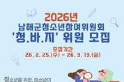 한국시사경제 경남취재본부 | 남해군은 2026년 지역 청소년 정책을 함께 만들어 갈 청소년참여위원회 신규 위원을 모집한다고 밝혔다. 청소년참여위원회 ‘청바지’(청소년을 위한 청소년이 바라는 청소년들에 의한 지역사회)는 청소년 관련 정책과 사업을 제안하고, 사업 추진 과정에 주체적으로 참여하는 청소년 참여 기구다. 청소년의 권익 증진과 실질적인 정책 반영을 위해 운영 되며, 학교 생활, 진로, 문화활동, 복지, 안전 등 청소년의 삶과 밀접한 다양한 분야를 다룬다. 위원으로 선발되면 정기회의와 분과활동에 참여하여, 정책 제안서 작성, 간담회 참석, 지역 행사 및 캠페인 활동 등을 수행하게 된다. 특히 청소년의 시각에서 지역 현안을 바라보고 개선방안을 제시하는 과정은 참여 청소년들에게 뜻깊은 경험이 될 것으로 기대된다. 모집 대상은 지역 내 거주하거나 재학 중인 청소년으로, 평소 지역사회의 정책 활동에 관심이 있거나 다양한 경험을 희망하는 청소년이면 누구나 지원이 가능하며, 총 20명을 선발할 예정이다. 청소년은 공개모집과 학교와 기관 추천을 병행해 선발하며, 활동기간은 4월부터