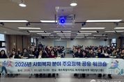 한국시사경제 문화팀 | 제주특별자치도는 지난 30일 제주도 복지이음마루 대강당에서 도와 행정시, 사회복지기관 및 시설, 출자·출연기관 관계자 100여 명이 참석한 가운데 ‘2026년 사회복지 분야 주요 정책 공유 워크숍’을 개최했다. 이번 워크숍은 2026년 새롭게 도입되거나 확대되는 복지 사업의 방향성을 현장과 공유하고, 실효성 있는 정책 추진을 위한 소통의 장으로 마련됐다. 행사는 근로자건강센터 윤원진 강사의 ‘직무 스트레스 관리’ 특강을 시작으로 부서별 정책 발표, 질의응답 및 건의사항 청취 순으로 진행됐다. 특히 2026년 새롭게 도입되거나 확대 시행되는 복지 사업을 중심으로 정책 방향을 공유하는 데 초점을 맞췄다. 우선, 올해부터 손주돌봄수당을 신설하고, 읍·면 지역 사회복지 생활시설 종사자 교통비, 다함께돌봄센터 아동 중식비, 어린이집 외국인 아동 보육료를 새롭게 지원한다. 3월 27일부터 장애인·노인을 우선 대상으로 의료·요양·생활을 통합 지원하는 지역 기반 통합돌봄 체계를 시행하며, 제주가치돌봄과 제주형 건강주치의 연계를 통해 지역 중심 돌봄을 추진한다. 제주