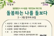 한국시사경제 경기북부취재본부 | 의정부시는 2월 9일부터 19일까지 돌봄활동가를 위한 자기돌봄·역량 강화 프로그램 ‘돌봄하는 나를 돌보다’ 2~3월 참가자를 모집한다. 이번 프로그램은 요양보호사, 아이돌보미, 사회복지사 등 사회취약계층을 위해 일하는 돌봄활동가의 심리적 회복과 근로 의욕을 높이기 위해 마련했다. 프로그램은 ▲2월 23일 아로마클래스(천연 원료 화장품 만들기) ▲3월 24일 싱잉볼 명상 요가(싱잉볼과 함께하는 힐링 요가) 2개 과정으로, 문예숲 커뮤니티센터 흥선점(의정로 132번길 36, 흥선어울림센터 2층)에서 오전 10시부터 낮 12시까지 운영한다. 수강료는 무료이며, 각 과정별 10명을 선착순으로 선정한다. 온라인(홍보 포스터 내 QR코드 접속) 또는 문예숲 커뮤니티센터 흥선점 방문(평일 오전 9시~오후 6시, 점심시간 낮 12시~오후 1시 및 주말 제외)을 통해 신청 가능하다. 선정 결과는 2월 중 대상자에게 개별 통보될 예정이다.