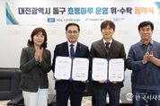 한국시사경제 대전취재본부 | 대전 동구는 29일 한국폴리텍Ⅳ대학 산학협력단(단장 김건완)과 효평마루 민간위탁 운영을 위한 위·수탁 협약을 체결했다고 밝혔다. 이번 협약은 효평마루의 안정적이고 체계적인 관리‧운영을 위해 전문성을 갖춘 기관을 대상으로 민간위탁 공개모집을 실시한 결과, 한국폴리텍Ⅳ대학 산학협력단이 최종 수탁기관으로 선정됨에 따라 추진됐다. 협약에 따라 한국폴리텍Ⅳ대학 산학협력단은 2026년 2월부터 2028년 12월까지 약 3년간 효평마루의 관리·운영을 맡아 ▲지역 작가 전시 기회 확대 ▲AI를 활용한 문화예술 체험 프로그램 기획·운영 ▲효평마루 및 주변 시설물 유지관리 ▲지역 관광자원과 연계한 확장 사업 등을 추진할 계획이다. 구는 2024년 효평마루 위탁사업 종료 이후 대청호 관광 활성화 방안의 일환으로 효평마루를 문화예술 체험 공간으로 전환하는 방안을 검토해 왔으며, 이번 협약을 통해 예술 체험 프로그램과 소규모 공연 등 다양한 콘텐츠가 어우러진 복합 문화예술 공간으로의 변화를 기대하고 있다. 박희조 동구청장은 “안정적인 운영 기반과 시대 흐름에 부합하는 기술 역량을 갖춘 한국폴리