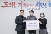 한국시사경제 사회팀 | 군포시는 지난 11일 주식회사 동양 건재부문 안양공장으로 부터 후원금 500만원을 기탁받았다고 밝혔다. 기탁식에는 하은호 군포시장, ㈜동양 건재부문 안양공장 공장장 등 관계자가 참석하여 담소를 나눴다. 이날 기탁식에 참석한 정정태 공장장은 “어려운 이웃에 조금이나마 도움을 줄 수 있어 기쁘며, 군포시 관내 기업으로 이웃과 사회를 생각하는 건강한 기업이 되도록 노력하겠다.”고 말했다. 하은호 군포시장은 “매년 지역사회의 어려운 이웃을 위해 나눔에 앞장서는 ㈜동양 건재부문 안양공장에 감사드리며, 앞으로도 지역과 함께 발전·성장하는 기업이 되길 진심으로 바란다”고 전했다. 이번 후원금은 사회복지공동모금회를 통해 관내 취약계층에 전달 할 예정이다.