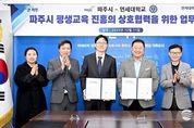 한국시사경제 경기북부취재본부 | 파주시는 지난 11일 연세대학교 미래교육원과 ‘일생일대 프로젝트’의 공동 기획·운영을 위한 평생교육 진흥 업무협약(MOU)을 체결하고, 2026년 사업 확대를 위한 협력 체계를 본격 가동했다. 이번 협약은 파주시의 대표적인 대학 연계 평생학습 사업인 ‘일생일대 프로젝트’를 보다 체계적이고 지속 가능하게 추진하기 위한 협력 기반을 마련하기 위한 것으로, 시민 생활권 내에서 명문 대학의 고품격 교육을 누릴 수 있는 학습 환경 조성을 목표로 한다. ‘일생일대 프로젝트’는 하나의 읍면동 평생학습센터와 하나의 대학을 1대 1로 연계해, 시민들에게 생활권 내 학습 기회를 제공하는 경기도 최초의 파주형 평생학습 모델이다. 연세대학교(미래교육원)은 이번 협약을 통해 대학이 보유한 전문성과 교육 자원을 활용해 파주시민을 위한 특화 교육과정을 설계·운영할 예정이다. 이날 협약식에서 오석영 연세대학교 미래교육원장은 “연세대학교 미래교육원은 지역사회와 함께하는 평생교육을 꾸준히 실천해 왔다”라며 “이번 협약을 통해 파주 시민에게 실질적이고 의미 있는 학습 기회를 제공하고, 대학이 가진 지식과 인적 자