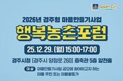 한국시사경제 경북취재본부 | 경주시가 오는 29일 오후 3시부터 5시까지 청內 알천홀에서 주민·전문가·행정이 함께 참여하는 ‘경주시 마을만들기 행복농촌포럼’을 개최한다. 이번 포럼은 농촌이 단순한 거주공간을 넘어 서로 돌보고 함께 살아가는 공동체의 터전이라는 인식 아래, 인구 감소와 고령화, 생활방식 변화 등으로 농촌 지역이 직면한 과제에 대응하기 위해 마련됐다. 경주시는 이번 포럼을 통해 농촌지역 활성화 전략과 마을만들기 추진체계의 의미 있는 미래 방향이 폭넓게 논의될 것으로 기대하고 있다. 행복농촌포럼은 경주시 마을만들기 정책 방향 발표를 시작으로 전문가 초청 주제 특강, 우수사례 발표와 질의응답 등으로 구성된다. 특히 2026년부터 단계적으로 추진될 ‘경주형 마을만들기 사업’의 주요 변경 사항과 추진체계 개편 방향을 집중적으로 다룰 계획이다. 주낙영 경주시장은 “그간 농촌공간정비사업과 기초생활거점사업, 농촌중심지 활성화사업 등 다양한 농촌개발 사업을 추진해왔다”며 “이번 포럼을 계기로 지역별 특성에 기반한 맞춤형 농촌 발전 전략을 더욱 강화해 나가겠다”고 말했다.