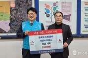 한국시사경제 충남취재본부 | 충남 서산시 수석동은 지난 9일 한국수자원공사 서산수도지사가 이웃돕기 성금 100만 원을 기탁했다고 밝혔다. 수석동은 이날 수석동 행정복지센터에서 차선준 수석동장, 박진철 한국수자원공사 서산수도지사장 등이 참석한 가운데 기탁식을 개최했다. 이번 성금은 설 명절 어려운 이웃을 돕기 위해 한국수자원공사 서산수도지사 직원들의 자발적인 모금으로 마련됐다. 수석동은 이번 성금이 관내 어려운 이웃을 돕는 데 활용될 수 있도록 충남사회복지공동모금회에 전달할 계획이다. 한편, 한국수자원공사 서산수도지사는 지난해부터 ‘물 나눔 행복 두 배 프로그램’을 추진, 관내 물 복지 취약계층 가구에 수도 요금을 지원했다. 또한, 매년 어려운 이웃을 돕기 위한 성금을 전달해 오고 있으며, 사랑의 김장 행사 등에 참여하는 등 지역사회의 한 일원으로서 다양한 사회공헌활동을 이어오고 있다. 박진철 한국수자원공사 서산수도지사장은 “어려운 이웃들이 따뜻한 설 명절을 보내길 바라며 직원 일동이 십시일반 이번 성금을 마련했다”라며 “한국수자원공사 서산수도지사는 앞으로도 어려운 이웃 돕기