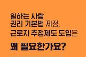 한국시사경제 문화팀 | 일하는 사람 권리 기본법 제정, 근로자 추정제도 도입은 왜 필요한가요? 제대로 알려드립니다. Q1. 일하는 사람 권리 기본법 제정, 근로자 추정제도 도입은 왜 하는건가요? AI 혁신, 플랫폼 경제 급성장 등 대전환의 시대에 새롭게 발생하는 모든 형태의 일하는 사람을 보호하기 위함입니다. Q2. 그럼 플랫폼종사자, 프리랜서 등은 모두 근로기준법상 근로자가 되는 건가요? 근로기준법상 근로자의 개념이 바뀌거나 확대되는 것은 아닙니다. Q3. 근로기준법상 근로자 개념이 확대되는 게 아니라면, 플랫폼종사자, 프리랜서 등은 보호되지 않는 것 아닌가요? 플랫폼종사자, 프리랜서도 일하는 사람 권리 기본법에 따라 보호될 수 있습니다. 또한, 근로자 추정제도를 통해 근로자임에도 입증하지 못해 근로자로 인정받지 못했던 사람들을 확실히 보호하면서, 가짜 3.3 감독을 통해 현장의 잘못된 관행을 바로 잡아나가겠습니다. Q4. 일하는 사람 권리 기본법은 선언적 규정이라고 하던데, 그럼 실효성이 없는 것 아닌가요? 기본법은 일하는 사람의 인권, 경제적 권리, 사회보장 권리 등을 규정하고 있으며, 경제적