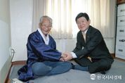 한국시사경제 노승선 기자 | 오영훈 제주특별자치도지사는 설 명절을 맞아 18일 도내 유일한 생존 독립유공자인 강태선 애국지사의 자택을 방문해 세배하고 새해 인사를 나눴다. 오영훈 지사는 “국가유공자들의 숭고한 희생과 헌신 위에 오늘의 제주가 있다”며 “새해에도 건강하시고, 제주가 우주·신산업 등 새로운 성장 기반을 차근차근 만들어 가는 모습으로 보답하겠다”고 말했다. 이어 “국가를 위해 헌신하신 분들이 일상 속에서 존중받을 수 있도록, 국가유공자 예우 강화를 도정의 중요한 책무로 삼아 끝까지 최선을 다하겠다”고 강조했다. 강태선 애국지사는 “새해에도 제주가 더 크게 발전하길 바란다”며 “도민을 위해 애써 달라”고 덕담을 전했다. 강태선 애국지사는 18세이던 1942년 일본으로 건너가 독립운동을 위한 모임을 조직하고 동지를 규합하다 일제에 체포돼 징역 2년 6월형을 선고받고 복역했다. 광복을 맞아 출옥한 뒤 공로를 인정받아 1982년 대통령 표창, 1990년 건국훈장 애족장을 서훈받았다. 1924년생인 강태선 애국지사는 올해 만 101세로, 현재 국내 생존 애국지사 4명 가운데 한 명이다