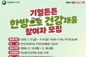 한국시사경제 의료보건팀 | 대전 서구는 이달 19일부터 ‘기혈튼튼, 한방으로 건강채움!’ 프로그램 참가자를 모집한다. 관저주민건강센터에서 진행되는 이번 프로그램은 한의약 건강 관리법을 일상에서 쉽게 실천하도록 돕기 위해 마련됐다. 주요 내용으로는 △기초 검사(혈압, 혈당, UBO맥파검사 등) 및 한의약 건강 상담 △한의사와 함께하는 건강 관리 교육 △경혈 지압법 △동의보감(안마도인) 체조 △호흡 명상법 등을 담았으며, 전문 한의사 인력이 이론 및 실습 교육을 병행한다. 60세 이상 신체활동이 가능한 지역 주민 누구나 신청할 수 있으며, 오는 19일부터 26일까지 유선으로 선착순 접수한다. 신청 및 추가 문의는 센터로 전화하면 된다.