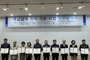 한국시사경제 사회팀 | ‘수원시 학교급식 잔식 기부사업’에 참여하는 학교가 기존 8개에서 14개로 늘어난다. 수요처도 2개 기관에서 8개 기관으로 증가한다. 수원시는 19일 농수산물도매시장 관리동 대회의실에서 신규 참여기관과 업무협약을 체결하고, 적극적인 협력을 약속했다. 신규 참여기관은 다솔·당수초등학교, 권선중학교, 망포·매향여자정보·조원·천천·한봄고등학교 등 8개 학교와 서호·수원·수원YWCA·우만·청솔·효경의손길 등 6개 재가노인지원서비스센터이다. 협약에 따라 8개 학교는 학교급식 잔식 기부에 협력하고, 6개 재가노인지원서비스센터는 학교급식 잔식을 기부받아 도움이 필요한 이웃에 전달하는 역할을 한다. 학교급식 잔식 기부사업은 학교급식에서 배식하지 않고 남은 음식을 먹거리 취약계층에 지원해 돌봄 사각지대를 해소하고, 식량자원을 순환하는 사업이다. 수원시와 수원교육지원청·수원지속가능발전협의회·수원시자원봉사센터, 8개 초중고등학교, 광교종합사회복지관·우만종합사회복지관은 지난해 8월 협약을 체결하고, 9월 2일부터 12월 12일까지 학교급식 잔식 기부 시범사업을 운영한 바 있다. &nb