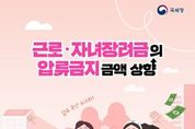 한국시사경제 문화팀 | ■ 근로·자녀장려금의 압류금지 금액 상향 ▷변경 전 국세징수법 압류금지 소액재산 기준 185만 원→2023년 250만 원 상향 (그러나) 근로장려금의 압류금지 금액 기존과 동일한 185만 원 ▷변경 후 저소득 가구의 소득지원 강화를 위해 근로·자녀장려금의 압류금지 금액기준 250만 원으로 상향 · 추진 배경 국세징수법과 조세특례제한법의 장려금 압류금지 금액 한도가 달라 납세자와 채권자 등의 압류관련 업무 혼선 발생 · 주요 내용 [압류금지 금액 상향] 국세징수법에서 최저생계비 등을 고려하여 정한 압류 금지금액(250만 원) 수준으로 근로 자녀장려금 환급액의 압류 금지금액 상향 · 시행일 조세특례제한법시행령 개정(안) "시행일 이후" (2026년 상반기 예정)