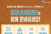 한국시사경제 문화팀 | 40대 이상 재직자(퇴직예정자), 구직자라면? 중장년내일센터와 함께 준비하세요! - 생애경력설계 프로그램 : 직업역량, 가치관 분석 등 미래 경력 대안 탐색 지원 - 전직스쿨 프로그램 : 변화 관리 및 취업·전직 가능성 제시 - 재도약 프로그램 : 구직의욕 고취 및 구직 스킬 향상 지원 - 다양한 중장년 정책 안내 : 일경험, 지원금, 일자리 등 정보제공 · 비용 부담 ZERO! 전액 무료! · 간편한 온라인 신청 가능! 전국 38개 중장년내일센터로 오세용!