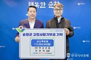 한국시사경제 전북취재본부 | 순창군은 13일 (유)만성산업 전인석 대표가 고향사랑기부금 500만원을 기탁했다고 밝혔다. 모래, 자갈, 산림 골재 채취 및 혼합골재 생산을 전문으로 하는 (유)만성산업을 운영 중인 전인석 대표는 평소 지역사회와의 상생을 기업의 핵심 가치로 삼아 이번 기부뿐만 아니라 장학금 기탁 등 다양한 사회공헌 활동을 통해 지역 사랑을 실천하고 있다. 전인석 대표는 “순창군에서 사업을 영위하고 있는 기업인의 한 사람으로서 군 발전에 조금이나마 기여할 수 있게 되어 매우 기쁘게 생각한다”며, “앞으로도 지속적인 나눔과 사회공헌 활동을 통해 지역과 상생을 이어가겠다”고 말했다. 군 관계자는 “순창에 대한 깊은 애정으로 소중한 기부금을 보내주신 전인석 대표께 깊이 감사드린다”며, “보내주신 기부금은 군민의 복리증진과 관련된 사업에 소중히 사용하겠다”고 화답했다.
