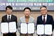한국시사경제 경기북부취재본부 | 의정부시가 경기북부 첨단 바이오산업의 메카로 거듭나기 위해 대학, 기업과 함께 강력한 지산학 협력 체계를 구축한다. 의정부시는 1월 30일 시청 회룡홀에서 을지대학교 산학협력단(단장 김인식), ㈜바이오간솔루션(대표 송명석)과 ‘지산학 협력 및 첨단 바이오산업 육성을 위한 업무협약’을 체결했다. 이번 협약은 관내 유치 기업인 ㈜바이오간솔루션의 안정적인 연구 공간 확보와 정착을 지원하고, 대학의 연구 인프라와 기업의 유전자 기반 원천기술을 결합해 의정부시를 글로벌 바이오산업 거점으로 조성하기 위해 마련됐다. 협약에 따라 세 기관은 ▲산학협력 기반 공동 연구과제 발굴 및 수행 ▲연구‧기술 교류를 통한 바이오산업 경쟁력 강화 ▲기업 투자 확대 및 사업 확장을 위한 행정적 지원 ▲기타 상호 발전을 위한 협력사항 등을 공동으로 추진하기로 했다. 또한, ▲시는 인프라 구축과 행정 지원을 맡고 ▲을지대학교 산학협력단은 실험 공간과 연구 장비의 공동 활용, 임상‧기초의학 기반 공동연구를 담당하며 ▲바이오간솔루션은 연구과제 발굴과 기술 상용화 등을 통해 지역사회 기여에 나선다. &nb