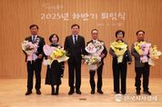 한국시사경제 울산취재본부 | 울산 동구는 12월 26일 오전 10시, 동구청 5층 중강당에서 퇴임자와 김종훈 동구청장 등 직원 60여 명이 참석한 가운데 2025년 하반기 퇴임식 행사를 개최했다. 이번 행사에는 직원과 공무원 등이 참석해 오랜 공직 생활을 마치고 떠나는 퇴직 공무원의 마지막 길을 축하했으며, 참석자들은 그간 공직자로서 지역발전에 헌신하고 주민들의 삶의 질 향상을 위해 노력해 온 퇴임자들의 노고에 감사의 마음을 전했다. 이번에 퇴임하는 박주홍 경제정책국장(34년 5개월 근무), 안정순 교육복지국장(34년 11개월 근무), 조황제 남목1동장(31년 5개월 근무), 김난희 건강관리과장(32년 1개월 근무), 김갑수 환경관리팀장(36년 5개월 근무) 등 5명은 30여 년간의 공직 생활을 마무리하고 퇴직 준비 교육 연수 실시 후 정년 퇴직할 예정이다. 김종훈 동구청장은 퇴임자에게 공로패 및 퇴임 기념품을 수여하고, 그동안 주민복리 증진 및 지역 사회 발전을 위해 오랜 기간 노력한 것에 대한 감사 인사를 전하며, 앞으로 열어갈 인생의 제2막을 응원했다.