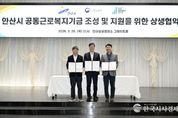한국시사경제 권충현 기자 | 안산시는 지난 26일 안산상공회의소 그레이트홀에서 경기지방고용노동청 안산지청, 안산시 공동근로복지기금 1호 법인과 함께 ‘안산시 공동근로복지기금 조성 및 지원을 위한 상생협약’을 체결했다고 27일 밝혔다. 이번 협약은 지역 중소기업과 노동자가 함께 참여하는 공동근로복지기금 조성을 통해 대·중소기업 간 복지 격차를 완화하고, 상생과 연대의 노동환경을 조성하기 위해 마련됐다. 앞서 시는 지난해 7월 ‘안산시 공동근로복지기금 지원 조례’를 제정하고, 기초자치단체 최초로 공동근로복지기금 지원사업을 시행했다. 이는 지방정부와 중앙정부, 기금법인이 함께하는 3자 협력 모델을 구축했다는 점에서 의미가 있다. 이날 협약식에는 이민근 안산시장을 비롯해 양승철 경기지방고용노동청 안산지청장과 장현준 기금법인 대표, 참여기업 관계자 등 100여 명이 참석한 가운데 공동근로복지기금 사업 출범을 기념하고 상생 협력 의지를 다졌다. 협약에 따라 안산시는 공동근로복지기금 조성 및 운영을 위한 행정·재정적 지원을 담당하고, 경기지방고용노동청 안산지청은 ▲정책 반영과 제도 개선 ▲참여기업 확대 및 우수
