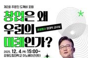 한국시사경제 권충언 기자 | 강원도립대학교는 지역주민과 학생을 위한 개방형 지식 교류 프로그램인 '주문진 도깨비포럼: 우리 시대의 명사가 전하는 말'의 두 번째 행사를 오는 12월 4일 오후 3시 강원도립대학교 이노베이션센터에서 개최한다. '주문진 도깨비 포럼'은 ‘창업’을 주제로 진행되는 공개 강연으로, 학생‧지역주민 등 강연에 관심 있는 누구나 참여할 수 있다. 이번 강연에는 스타트업 분야에서 활발히 활동하고 있는 장대익 가천대학교 스타트업칼리지 학장이 초청명사로 나선다. 장대익 학장은 “창업은 왜 우리의 미래인가?”라는 주제로, 빠르게 변화하는 사회에서 창업이 개인의 성장 전략이자 경력 설계 방식이 될 수 있다는 관점을 제시한다. 강연은 2시간 가량 진행되며, 이후 참석자 간 교류와 소통을 위한 다과회가 이어진다. 강원도립대학교는 이번 포럼을 통해 지역 창업 생태계의 지속가능한 성장 가능성을 모색하고, 지역민과 학생들이 미래 직업 경로를 주도적으로 설계 할 수 있는 계기를 제공한다는 계획이다. 최종균 강원도립대학교 총장은 “주문진 도깨비 포럼을 지역을 위한 개방형 지식