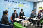한국시사경제 문화팀 | 제주특별자치도와 고용노동부가 도내 택배·배달·대리운전 등 이동노동자들의 노동환경 개선과 산업재해 재발 방지를 위한 정책 협력에 뜻을 모았다. 제주도는 30일 오후 이동노동자 쉼터 ‘제주 혼디쉼팡 연동센터’에서 고용노동부와 함께 ‘이동노동자 건강권 및 안전권 확보를 위한 현장 간담회’를 개최했다. 물류 수요 급증에 따른 이동노동자의 노동 여건을 점검하고, 현장의 목소리를 반영한 실질적인 제도 개선 방안을 모색하기 위한 자리였다. 간담회에는 오영훈 제주도지사, 김영훈 고용노동부 장관, 조순호 한국노총 제주지역본부 의장, 임기환 민주노총 제주지역 본부장을 비롯해 이동노동자와 고용노동부·제주도 관계자들이 참석했다. 간담회에 앞서 김영훈 장관과 오영훈 지사는 지난해 11월 새벽 배송 업무 중 사망한 고(故) 오승용 노동자의 유가족을 만나 깊은 위로를 전했다. 이어진 현장 간담회에서 오영훈 지사는 “제주 ‘혼디쉼팡’은 이동노동자들이 가장 많이 이용하는 쉼터”라며 “관광객이 지난해보다 증가하면서 생활인구가 늘어날 것으로 전망되는 만큼, 이동노동자 쉼터도 더욱 확대돼야 한다”