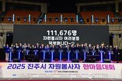 한국시사경제 윤광희 기자 | 진주시 자원봉사단체협의회(회장 심명환)는 6일 진주실내체육관에서 자원봉사자와 시민 등 2300여 명이 참석한 가운데 ‘2025 진주시 자원봉사자의 날 기념 한마음대회’를 성황리에 개최했다. 이번 행사는 자원봉사의 날(12월 5일)을 앞두고 마련된 자리로 한 해 동안 지역 곳곳에서 헌신과 나눔을 실천한 자원봉사자들의 노고를 격려하고, 시민과 함께 자원봉사의 가치와 의미를 되새기는 뜻깊은 시간이 됐다. 이날 행사에서는 △그동안 지역사회를 위해 힘쓴 봉사단체의 단체기 입장 △1년간의 자원봉사 활동 영상 상영 △유공자 표창 △감사 메시지 퍼포먼스 △단체별 장기자랑 등이 이어지며 웃음과 감동이 함께했다. 심명환 자원봉사단체협의회 회장은“11만 자원봉사자들이 진주시 곳곳에서 진심으로 헌신하고 있다”며“여러분들이야말로 진주의 희망이자 자랑”이라고 말했다. 조규일 진주시장은 “보이지 않는 곳에서 진심으로 봉사해 주신 모든 분들 덕분에 진주가 더욱 행복한 도시로 빛나고 있다”며, “앞으로도 자원봉사활동이 더욱 활발히 이어질 수 있도록 행정적 지원을 아끼지 않겠다”고 말했다.