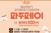 한국시사경제 경기북부취재본부 | 파주시는 다가오는 설 명절을 맞아 추가 충전금 혜택을 받을 수 있는 충전 한도를 기존 70만 원에서 100만 원으로 상향한다. 2월 한 달간 100만 원을 충전할 경우, 연중 상시 지급되는 10% 인센티브가 적용돼 추가 충전금 10만 원이 더해진 총 110만 원을 사용할 수 있다. 이를 통해 명절을 앞두고 소비 지출이 늘어나는 시민의 경제적 부담을 덜고, 지속적인 경기 침체로 어려움을 겪고 있는 관내 소상공인의 매출이 증대될 것으로 기대된다. 파주시 관계자는 “이번 파주페이 확대 발행이 설 명절 장바구니 물가 부담을 완화하고, 지역 골목상권에 활력을 불어넣는 마중물이 되길 바란다”라며, “시민 여러분의 많은 관심과 이용을 부탁드린다”라고 전했다. 한편, 파주페이는 ‘경기지역화폐’앱 및 관내 농협을 통해 충전이 가능하며, 현재 음식점, 학원, 전통시장 등 1만 6천여 개의 가맹점에서 사용할 수 있다. 파주시는 시민 편의 증진과 지역경제 활성화를 위해 지난해 가맹점 연매출 제한 기준을 12억 원에서 30억 원으로 대폭 완화해 사용처를 확대한 바 있으며, 어려운 재정 여건 속에서도 상