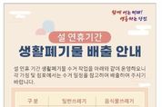 한국시사경제 충남취재본부 | 당진시는 설 연휴를 기간 시민 불편을 최소화하고 쾌적한 도시 환경을 유지하기 위해 연휴 기간 중 생활폐기물 수거 일정을 조정·운영한다고 11일 밝혔다. 시에 따르면 설 연휴 기간인 2월 14일부터 2월 18일까지 일반쓰레기와 음식물쓰레기 수거가 일부 조정된다. 2월 14일과 16일은 일반쓰레기와 음식물쓰레기를 모두 정상 수거하며, 2월 15일에는 일반쓰레기는 제한 수거하고 음식물쓰레기 수거는 중단한다. 또한 2월 17일과 18일에는 일반쓰레기와 음식물쓰레기 모두 제한 수거를 실시한다. 제한 수거 기간에는 대로변 등 일부 지역을 중심으로 수거가 이뤄지는 만큼, 시민들의 쓰레기 배출에 각별한 주의가 필요하다. 당진시는 연휴 기간 중 발생하는 불편을 줄이기 위해 생활폐기물은 가급적 정상 수거일 전날 일몰 후에 배출해 줄 것을 당부했다. 아울러 각 가정과 점포에서는 수거 일정을 사전에 확인해 무단 배출이나 장기 적치를 자제해 달라고 요청했다. 시 관계자는 “설 연휴 기간 수거 일정 조정으로 불편이 발생할 수 있으나, 시민 여러분의 협조가 쾌적한 주거환경 조성에 큰