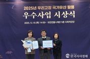한국시사경제 전북취재본부 | 군산국가유산야행’이 지난 18일 대전에서 개최된 국가유산청 주최 ‘2025년 우리고장 국가유산 활용 우수사업’ 평가에서 우수사업 수상의 영예를 안았다. ‘우리고장 국가유산 활용사업’은 국가유산의 가치와 의미를 재발견하고 이를 토대로 새로운 문화 콘텐츠를 개발하고자 기획한 국가유산청 공모사업으로, 올해 참여한 전국 47개 지자체 중 3개 지자체가 선정됐다. ‘군산국가유산야행’은 2016년 첫해 우수사업 선정 이후 10년이 지난 올해 다시 우수사업으로 인정받으며 군산 국가유산 활용사업의 저력을 입증했다. 또한 지난 1일 개최된 ‘피너클 어워즈’ 2개 부문 수상에 이어 이번 ‘우리고장 국가유산 활용 우수사업’ 선정됨으로써 시는 ‘군산국가유산야행’의 경쟁력을 다시 한번 확인받았다고 평가하고 있다. 군산시 관계자는 “앞으로도 국내 대표 야간 국가유산 향유 행사로 자리매김할 수 있도록 다양한 프로그램을 확대 ․ 운영하고, 시민과 관광객들이 함께 즐길 수 있는 콘텐츠를 강화하겠다.”라고 소감을 밝혔다. 이번 성과를 바탕으로 군산시는 ‘군산국가유산야행’을 지역 고유의 매력